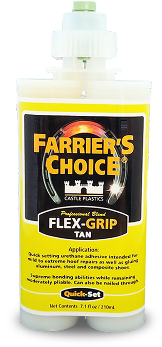 Quick-setting urethane adhesive intended for mild to extreme hoof repairs as well as gluing aluminum, steel and composite shoes.”